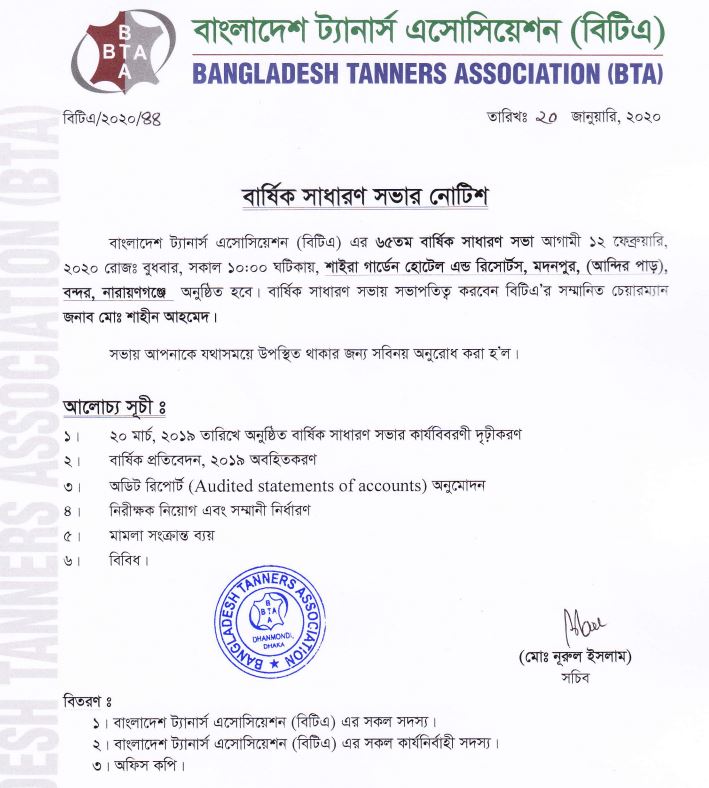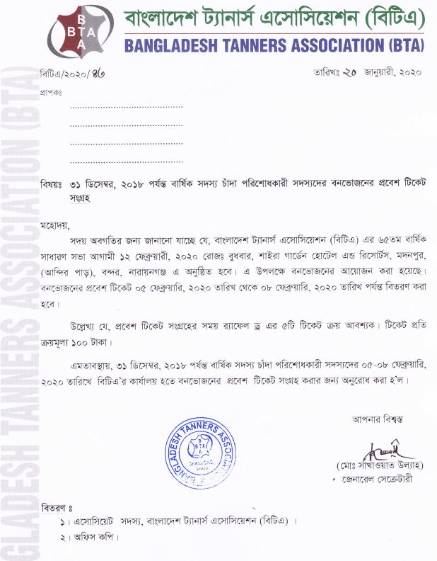 এ অবস্থায় গত ১৯, ২০ ও ২১ মে ২০২০, বাংলাদেশ ট্যানার্স এসোসিয়েশন (বিটিএ) এর পক্ষ থেকে চামড়া শিল্প নগরী ঢাকায় ট্যানারি শ্রমিকদের মাঝে নিত্য প্রয়োজনীয় দ্রব্যাদি ও ঈদের উপহার সামগ্রী বিতরণ করা হয়।