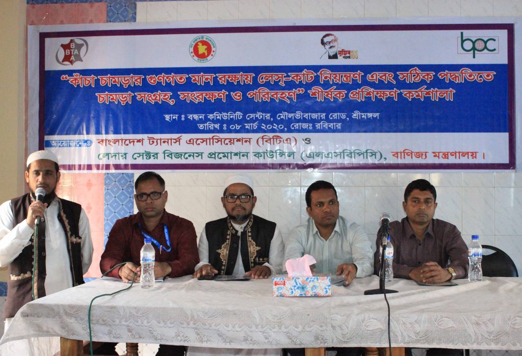 বাংলাদেশের চামড়া শিল্পের আধুনিকায়নে চামড়া ও চামড়া জাত পণ্যের নতুন বাজার সন্ধান এবং বিদেশী ক্রেতাদের দৃষ্টি আকর্ষণের লক্ষ্যে মানসম্পন্ন চামড়া ও চামড়া জাত পণ্যে উৎপাদনের জন্য ৮ মার্চ, ২০২০ রোজ রবিবার বেলা ০২:৩০ ঘটিকায় বন্ধন কমিউনিটি সেন্টার, মৌলভীবাজার রোড, শ্রীমঙ্গল এ “কাঁচা চামড়ার গুণগত মান রক্ষায় লেস্-কাট নিয়ন্ত্রণ এবং সঠিক পদ্ধতিতে চামড়া সংগ্রহ, সংরক্ষণ ও পরিবহণ” শীর্ষক একটি প্রশিক্ষণ কর্মশালা অনুষ্ঠিত হয়েছে।