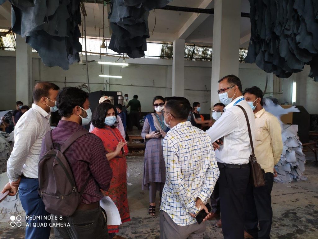 লেদার সেক্টর-কে শিশুশ্রম মুক্ত ঘোষণা করার ক্ষেত্রে সুপারিশ প্রণয়নের লক্ষ্যে গঠিত ‘জাতীয় মনিটরিং কোর কমিটি’র আহবায়ক এবং শ্রম ও কর্মসংস্থান মন্ত্রণালয়ের অতিরিক্ত সচিব মহোদয়ের নেতৃত্বে এবং বাংলাদেশ ট্যানার্স এসোসিয়েশন (বিটিএ)’র প্রতিনিধির উপস্থিতিতে কমিটি’র সদস্যগণ গত ১৬ নভেম্বর, ২০২০ তারিখে চামড়া শিল্প নগরী ঢাকা’র ট্যানারিসমূহ সরেজমিনে পরিদর্শন করেছেন।
